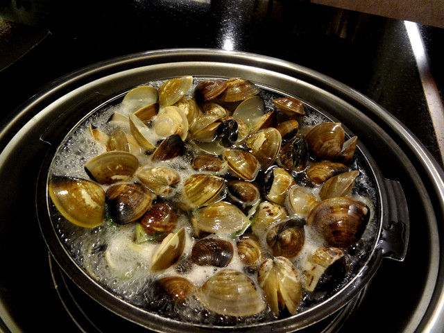gogogo~沸騰吧沙蜆看著鍋中的沙蜆一顆顆張開大嘴