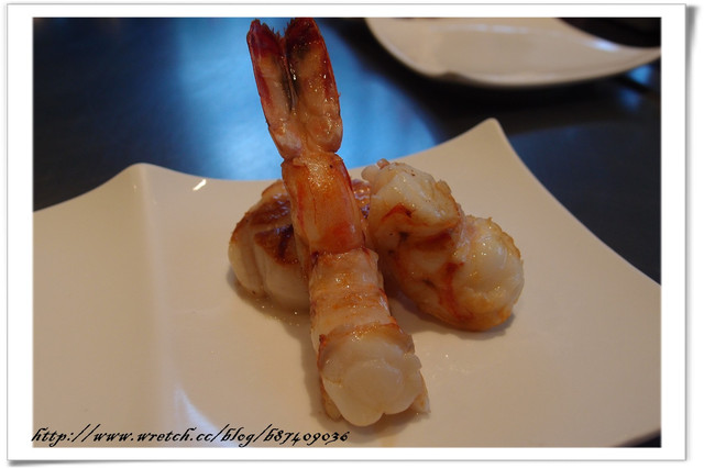 吃起來表層略脆內層卻還保持鮮軟 口感比起明蝦軟嫩了點 不過因為頗具厚度所以還是帶點嚼感