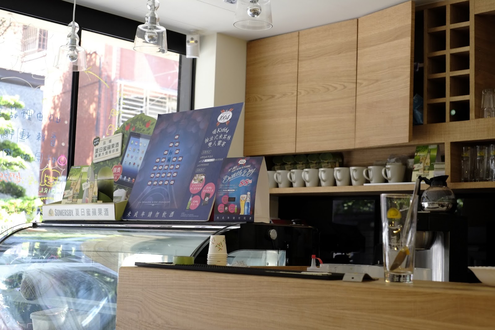 剛進來是客滿狀態,環境讓人感覺很舒服,右邊是櫃台,左邊是飲料吧檯,可以看到半開放廚房。店員有說試營運二樓目前未弄完,如果不嫌棄看要不要坐二樓,所以就移駕到只有我一個人的二樓,包場啦(大誤)。圖是吃完飯下樓沒人,店員在吃飯拍的。
