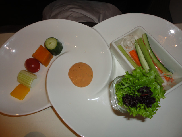 時蔬棒沙拉~都是生的,但沾醬後變好吃,我尤其是愛生菜底下的沾醬
