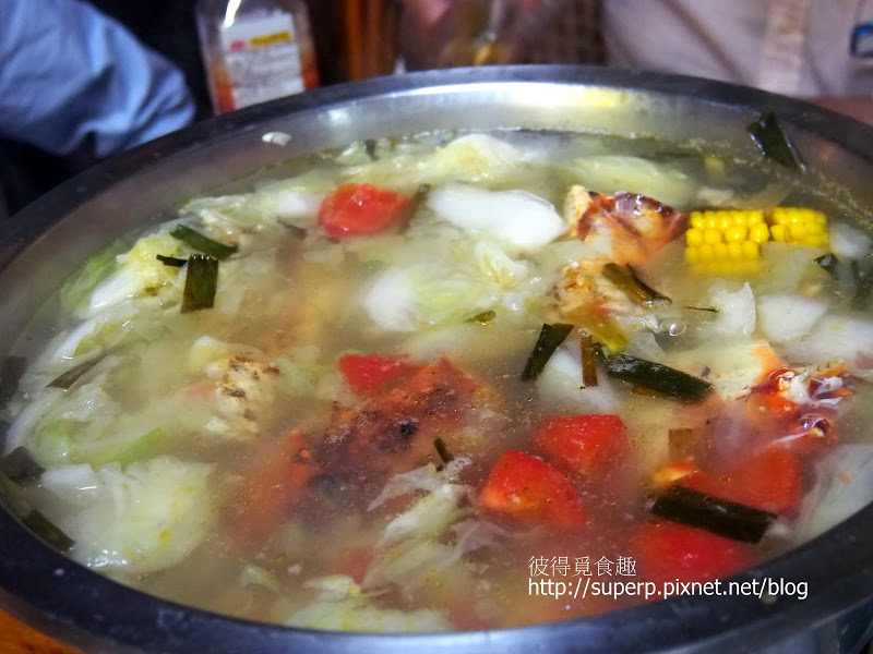 帝王蟹鍋$11,400(這帝王蟹一斤$1,200。其實感覺他們的價格合理,因為之前跟友人去桃園竹圍漁港買帝王蟹回家煮,一斤$1,000,所以店家並沒有漫天開價。蟹腿分切後,還會在中間剪開一部份,這樣方便客人吃。火鍋的體積頗為驚人,裡面的料非常多,而且湯頭本身就極為鮮美了。而且這帝王蟹有分兩種吃法,所以圖中這蟹腳只是一半的份量而已)