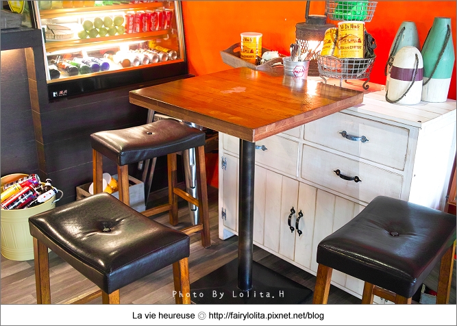 裡面的環境以橘灰色系為主,配上木質桌椅更襯托出南方美式鄉村的溫暖氣息,其中還看得到可愛又富創意的小擺飾,鬧中取靜的環境,少了喧嘩感更顯得悠閒舒服!