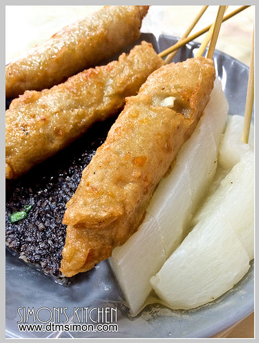 熱呼呼的黑輪搭配一點甜辣醬一起吃,很夠味。