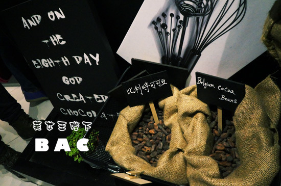 在價目表的旁邊下方有著大袋的原料介紹:可可豆、巧克力、砂糖等等