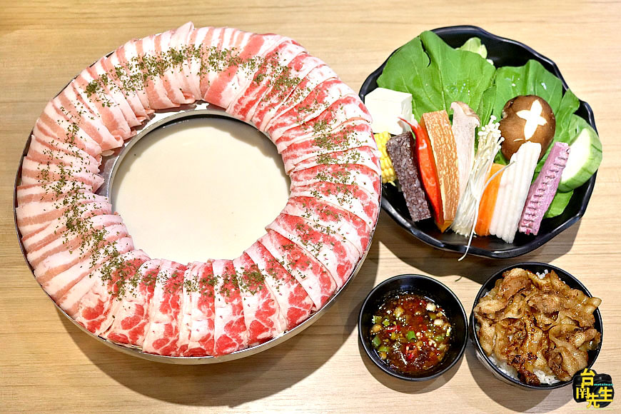 本店特色博多肉肉圈鍋:源自日本福岡的博多肉肉圈,疫情期間不能出國,來這邊也能吃得到。湯底選用北海道牛奶熬煮而成的牛奶湯底,濃醇奶香味越喝越涮嘴,肉品還可選擇培根豬x牛五花二合一