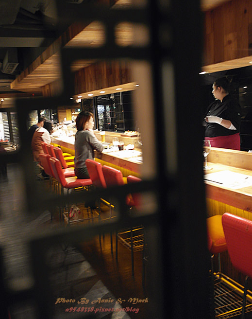 當日被安排在吧檯的位子,可以近距離觀賞主廚的廚藝秀,