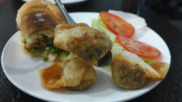咬下酥香的炸衣後,是帶有香料味但不嗆辣的肉末,