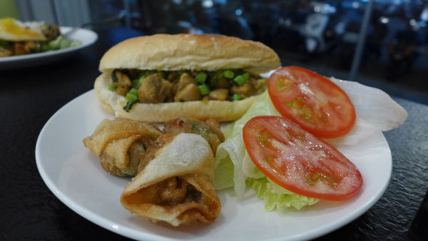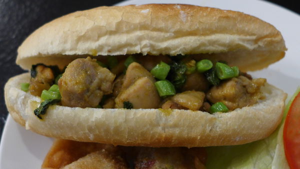 這份充滿南洋風情的漢堡真好吃,綠咖哩雞和麵包好速配