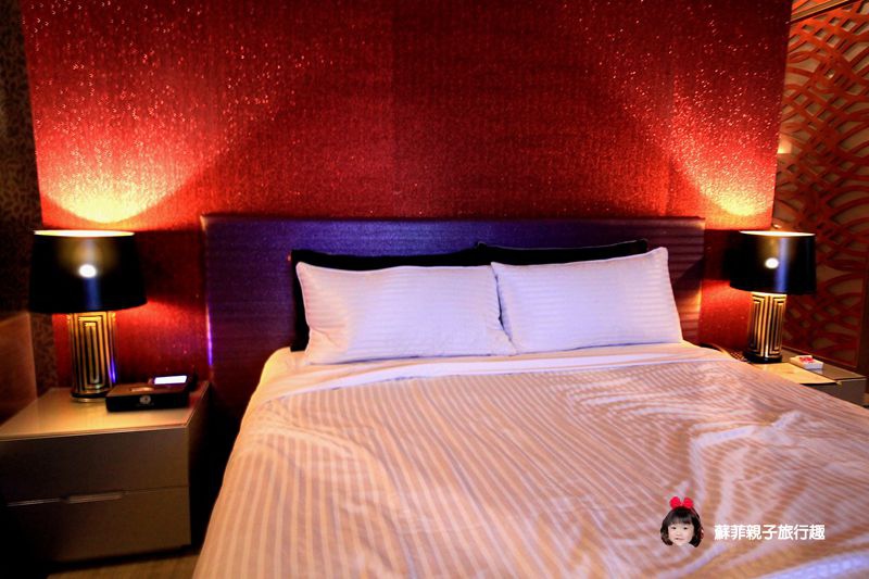 房間放置KING SIZE的大床,正對面的牆上,就掛著55吋寬螢幕的液晶電視,