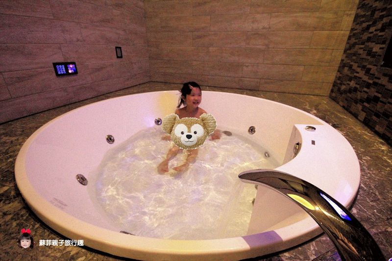 按下旁邊的SPA按摩鍵,不僅會有水療的按摩,還會閃爍七彩燈光,好好玩!