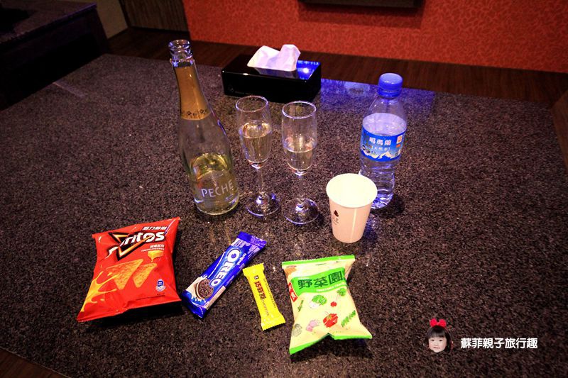 旅館貼心地準備了迎賓的水蜜桃氣泡酒,我立刻打開暢飲~