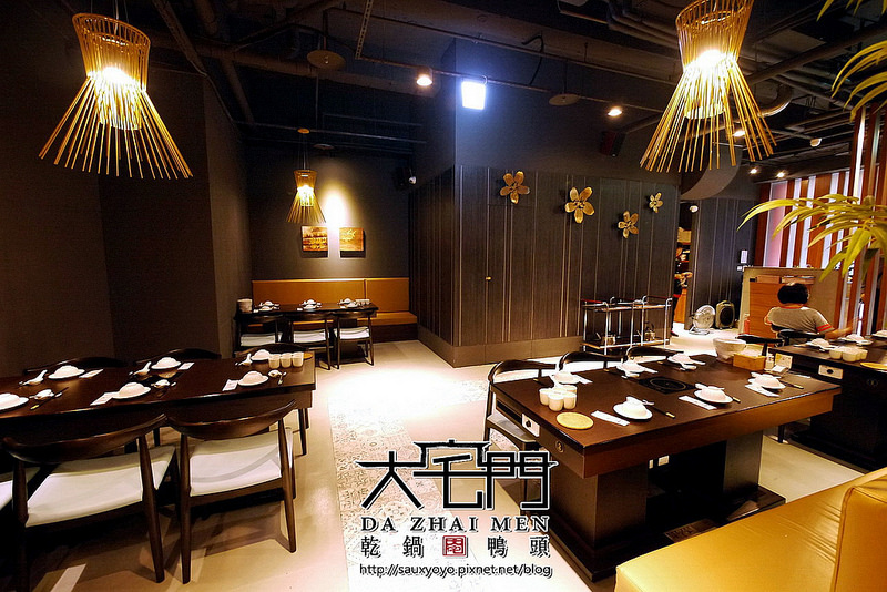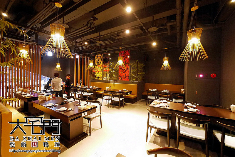 大宅門乾鍋鴨頭的裝潢上也頗具巧思,各式的燈具還有店內的造景也很值得細細品味。