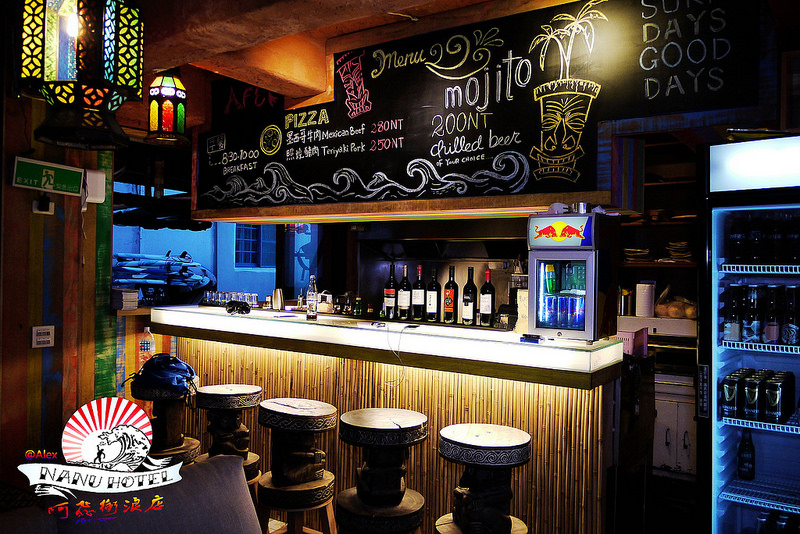走進民宿就是一座開放式吧檯,每家民宿都會有管家,阿飛佳樂水衝浪旅店NANU四館的管家是個年輕帥哥,