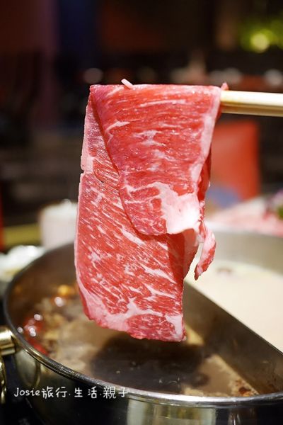 稍微涮二下,肉片六分熟,肉質呈現粉嫩略帶血色卻不見血,是Josie最愛的熟度
