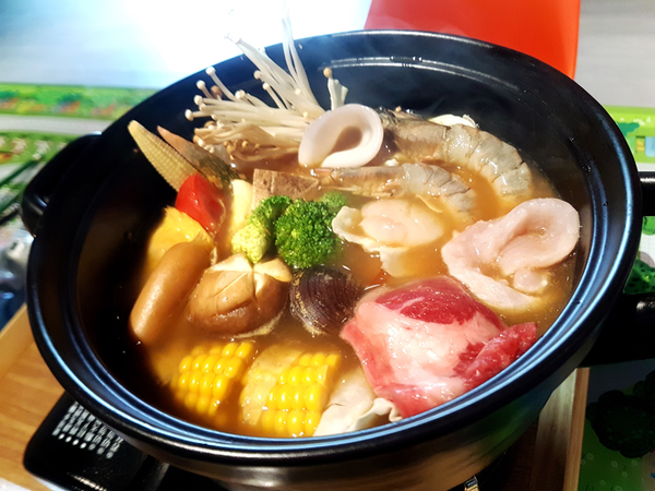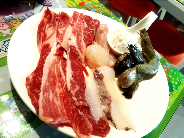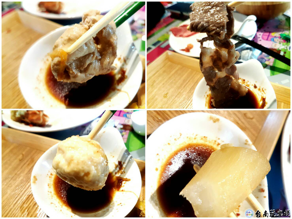 肉片可選擇:安格斯黑牛或A特級特松阪、3A等級軟絲、帶子干貝、特級蛤蜊 新鮮白蝦、台南特產虱目魚漿