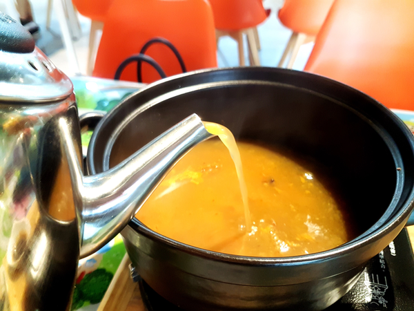 乾濕兩式的鍋,等品嘗完乾鍋以後可以加高湯來個第二輪的藥膳鍋。