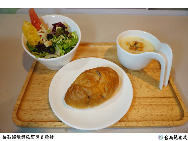 特調青醬、本土溫體雞肉的餐點,我覺得視覺上蠻誇張些,青醬燉飯及厚實起司雞排,看到這一份真的會讓人口水直流~好想吃看看這一道,這餐點對於某部分的女孩兒,具有一定殺傷力。(有機會這一道一定要品嚐)