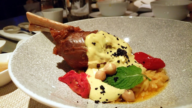 ▼今天點的主餐,燉羊膝搭紅花米型麵佐咖哩酸奶醬($1380)