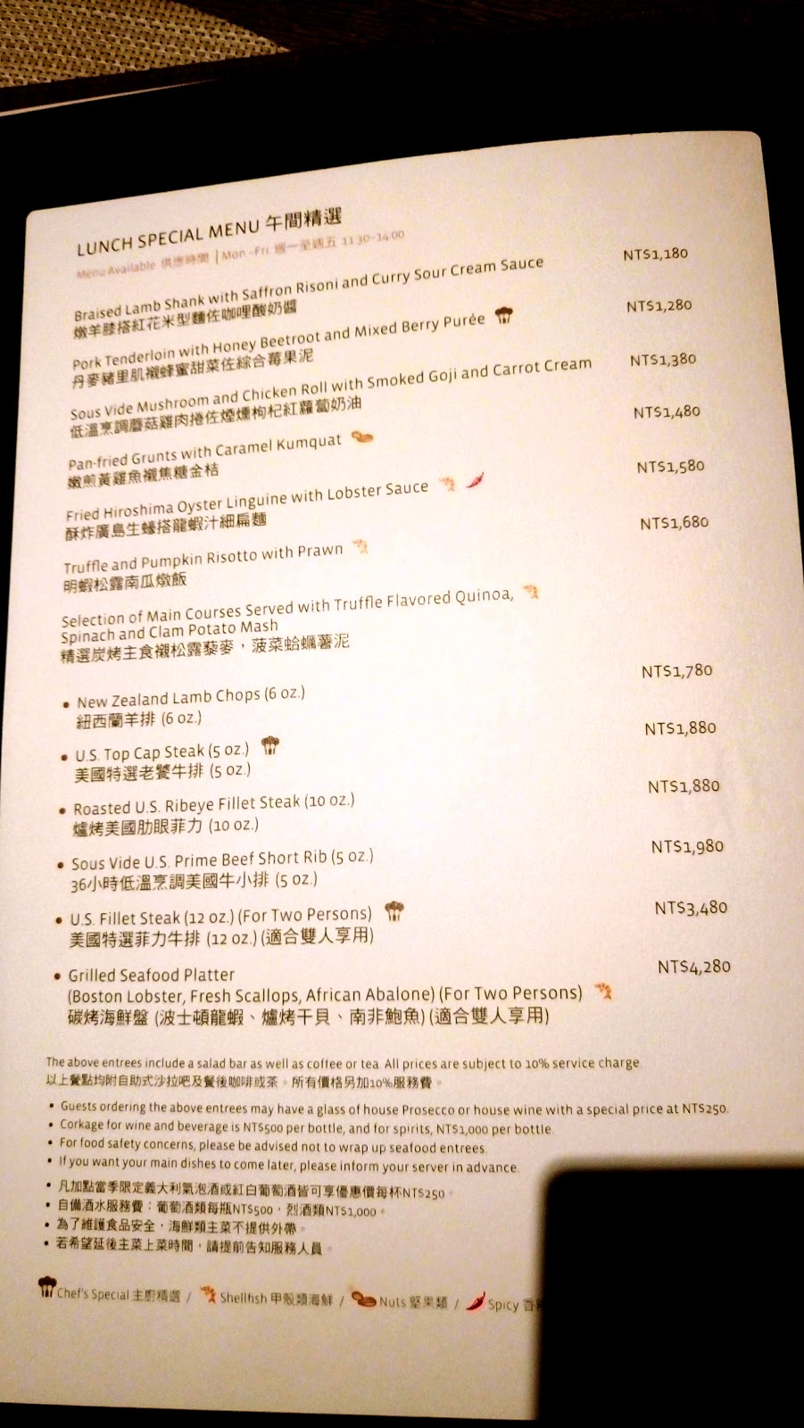 午餐最便宜從$1180起跳,晚餐最便宜從$1380起跳! 價位不便宜啊...