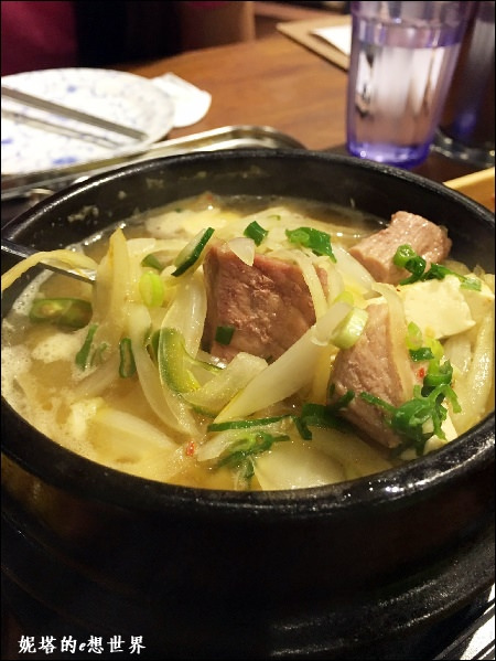 韓國常見的家常湯類料理,湯頭微辣裡面有滿滿的豆腐,豬肉,蔬菜,海鮮