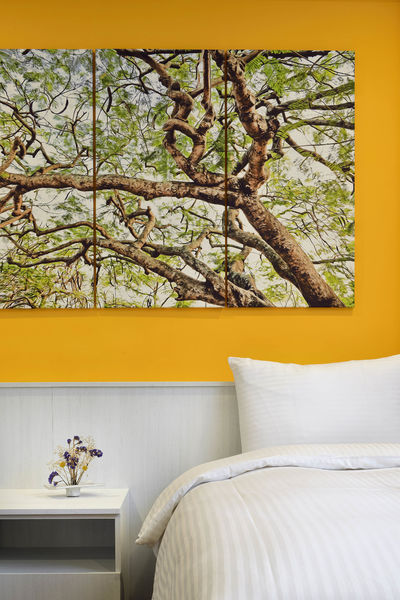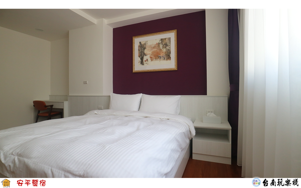 在此文藝氣息的房間,牆上掛上掛著某大師的創作,讓你除了欣賞美麗的圖畫,對於藝文創作的人適合入住此房。