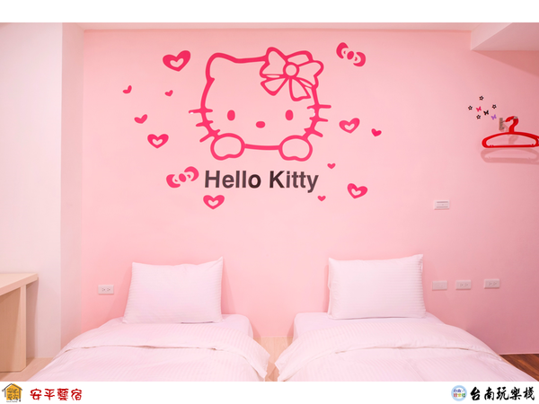 泥瞧瞧!連床頭牆上有大大的可愛Kitty耶~~