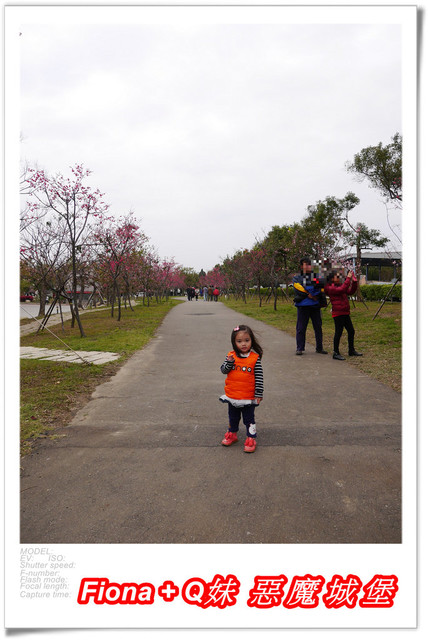 我想從掉落地面的櫻花花瓣開始拍,一直拍到枝頭上的櫻花,所以蹲了下來,Q妹一直問我在幹嘛 ? 然後也跟著我蹲了下來低頭看花瓣,哈哈 ! 小朋友真是好天真好可愛啊 !