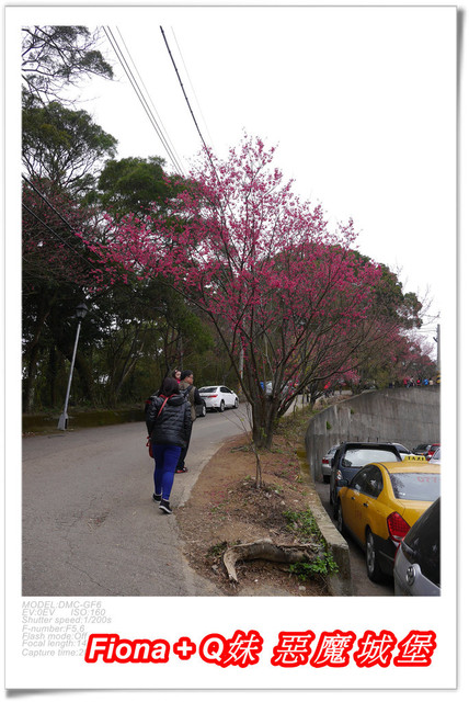 一下車發現在停車場周邊就有許多櫻花可賞,我們第一次來,也不太清楚賞花路線,總之先往宮廟方向走囉 !