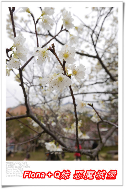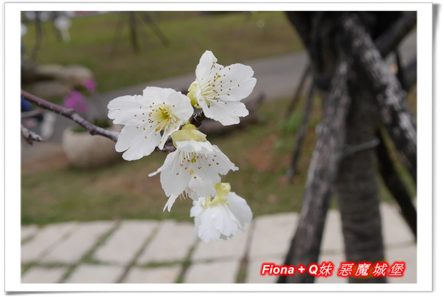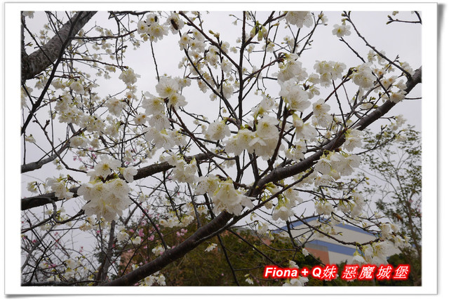 繼續往裡頭走,哇 ! 一片白,我原本以為是李花,沒想到這也是櫻花,我還是第一次看到白色的櫻花,覺得好新奇,她的名字叫"綠萼櫻",看起來清新優雅,好美好美,讓我狂拍個不停,我果然抗拒不了小白花無誤,呵呵 !