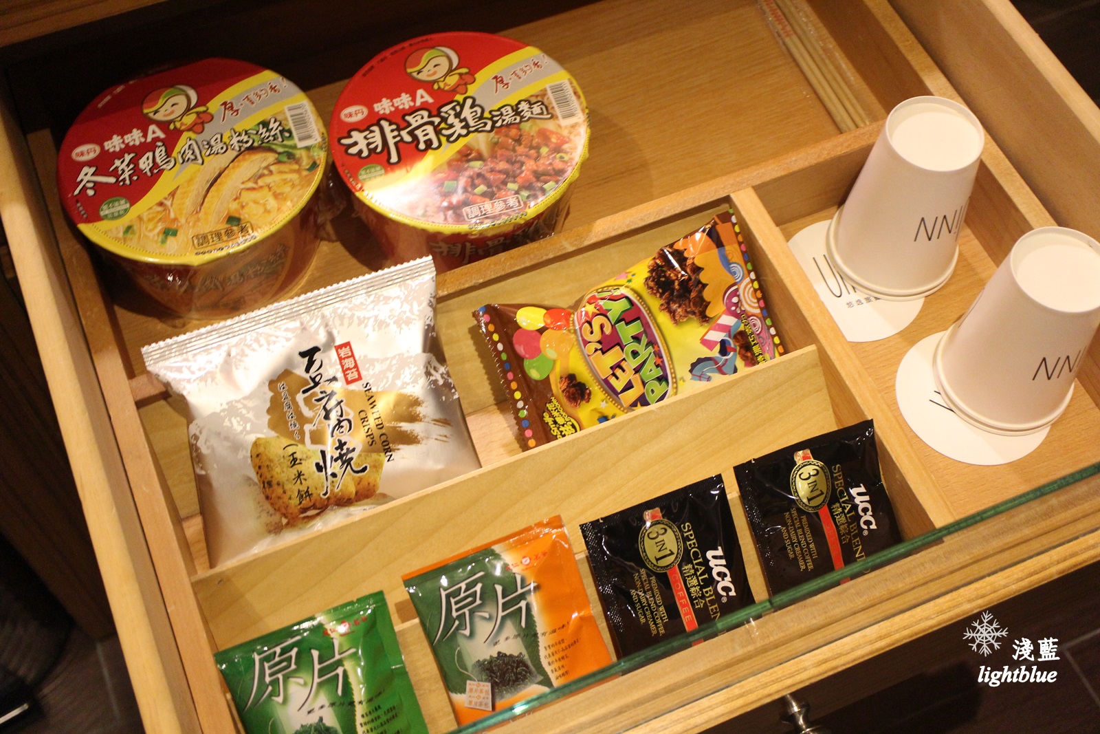 拉開抽屜,除了茶包咖啡之外,還有零食跟泡麵