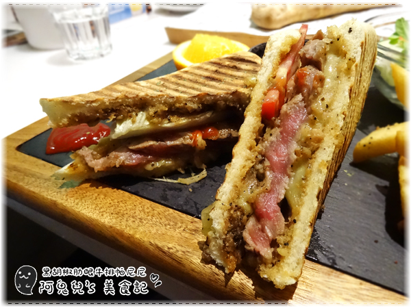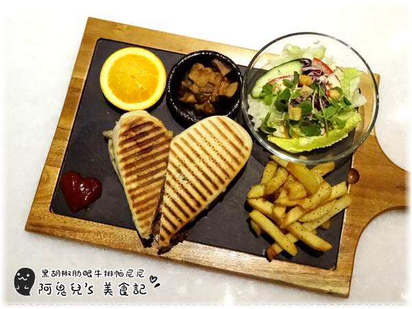 喜愛吃帕尼尼的我,第一次看到這麼高級的口味~牛排的熟度約是五分熟