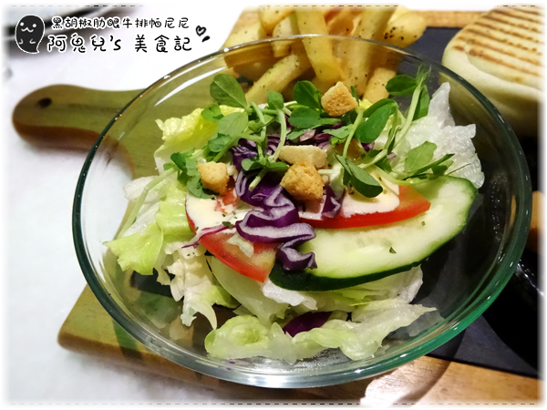 沙拉的醬料是優格醬,因此味道上滿清爽的,不過我覺得醬料可以多一點