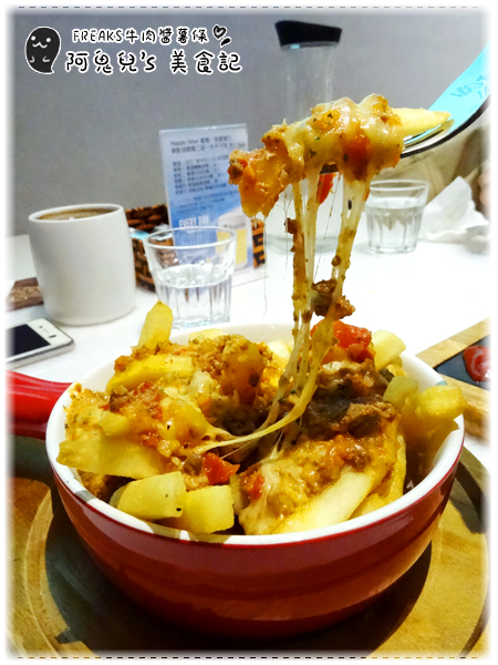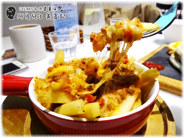 牛肉醬的份量很多,拿起薯條,竟然牽絲啦!沒想到牛肉醬也超級罪惡~
