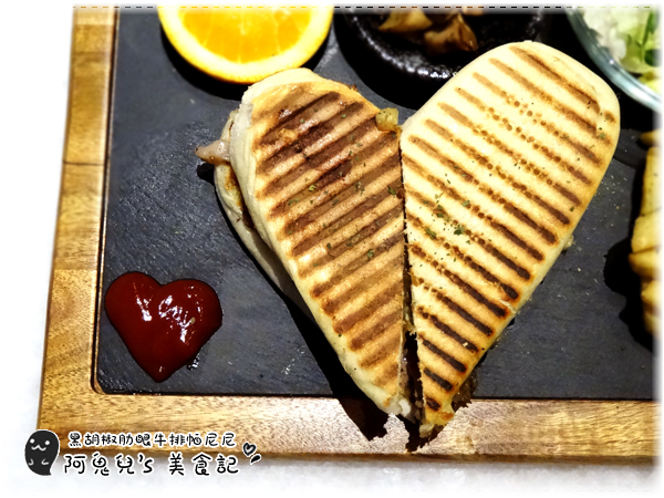 擺盤部分我覺得有用點小巧思,將帕尼尼擺放成心型,番茄醬也擠成愛心