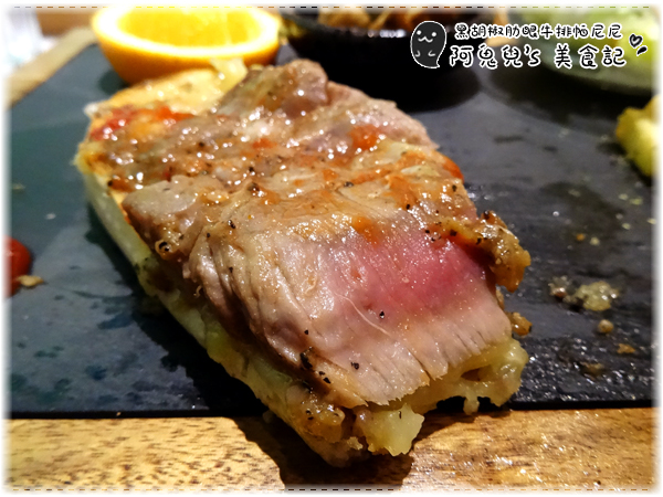 牛排粉嫩的切面好像高級料理,可惜有點冷了才吃,下方的起司沒有牽絲