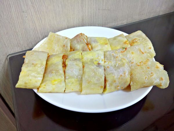 這份蛋餅真的頗大,送上來的時候我心裡有點小驚呼,幸好當時沒有點多了一份蛋的「雙黃蛋餅」!