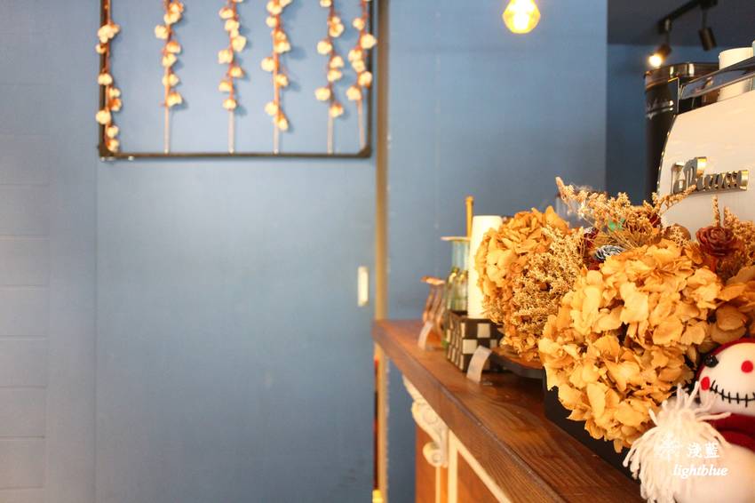 時安靜好以店內有這樣一株夢幻的樹著稱,藍色牆面的這一角也經常是大家拍照取景的首選