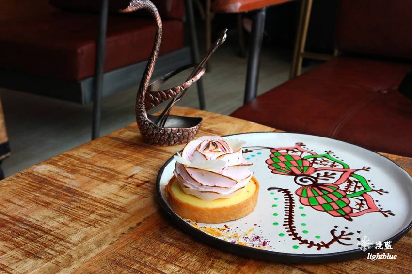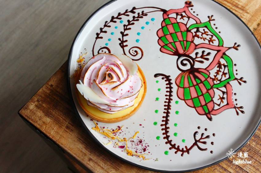 雖然我沒有特別偏愛檸檬塔,不過衝著他拍照效果實在太好,我便還是點了,而且沒預想到有店員在盤子上的繪圖,整體效果非常驚人,我還偷看到櫃台的其他盤子,每一個的花樣都不盡相同呢