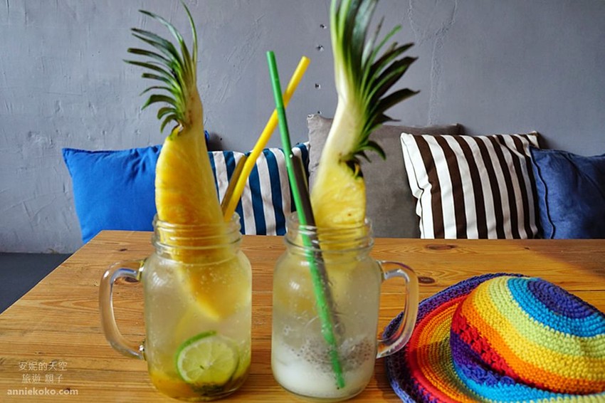 這飲料也太浮誇,大大的鳳梨切成片狀擺在飲料中,不僅好看,鳳梨還可以直接食用,非常消暑爽口。