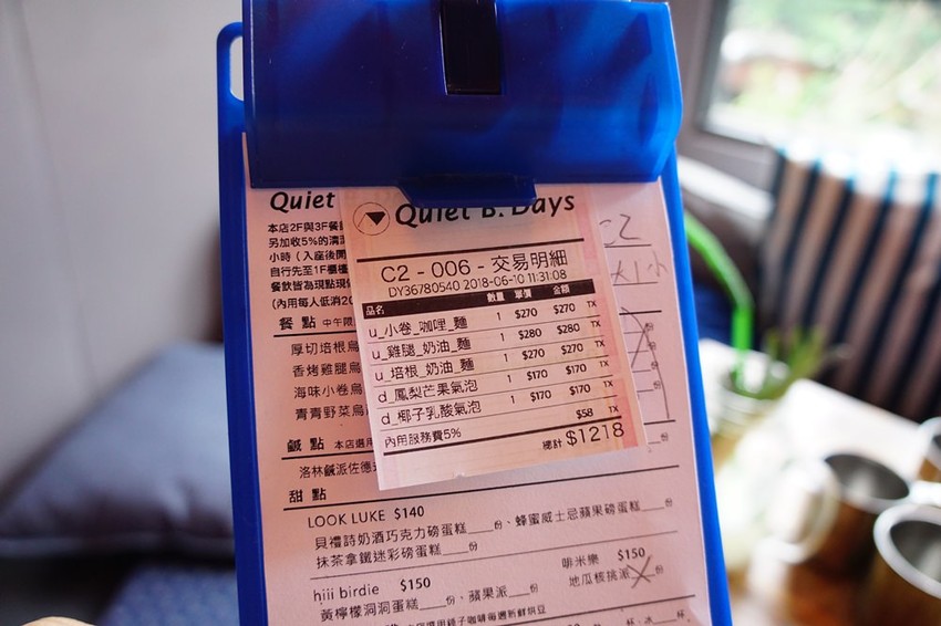 Q.B.Days / 靠北過日子有限制用餐時間大約2小時,這裡真得是相當熱門景點,建議想要過來的朋友,11:00營業時間一到就先來卡位吧,坐在這裡吃飯看海都很舒服,餐點表現又很棒,很多事想要靠北的時候,就來靠北過日子療癒一下自己吧。