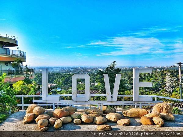 藍白色風車,教堂,LOVE字樣觀景台。。