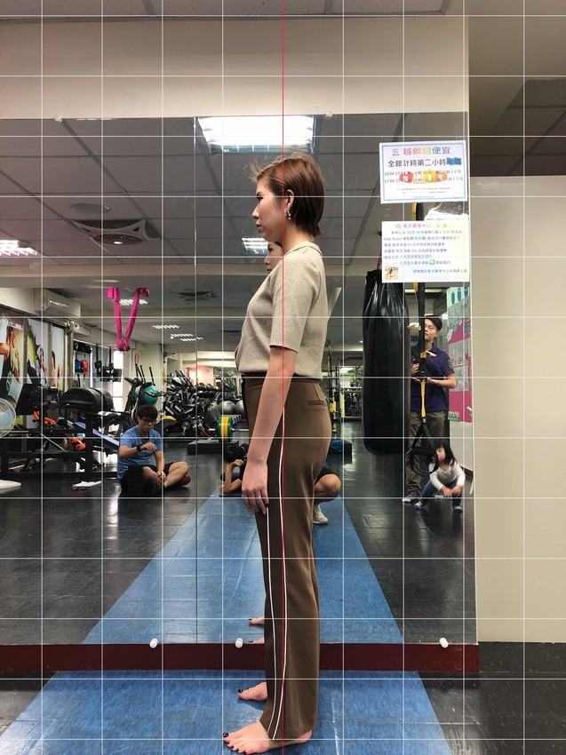 教練還有專業的軟體拍照來檢測看看身體站姿是否有歪斜的狀況,不得不說東京健身中心的教練都很有知識,從我們自己本身的站姿就可以看得出來哪個部位可能之前有受傷或是不如以往正常活動的區域,我的膝蓋之前運動受傷過,所以走路站姿多少都會有一些變化,教練也與我做分析,也從中建議我該怎麼訓練加強。