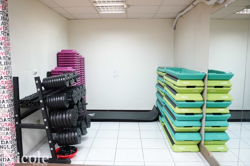 超寬敞的有氧教室,應有盡有的器材都不怕學生使用,每個月都有固定課表可以讓學生來上課,課表內容大致上有瑜珈、格鬥有氧、有氧舞蹈、墊上核心、肌力瑜珈,有分別付費課程與會員免費課程,可以依照自己所喜歡的課程來選擇哦。