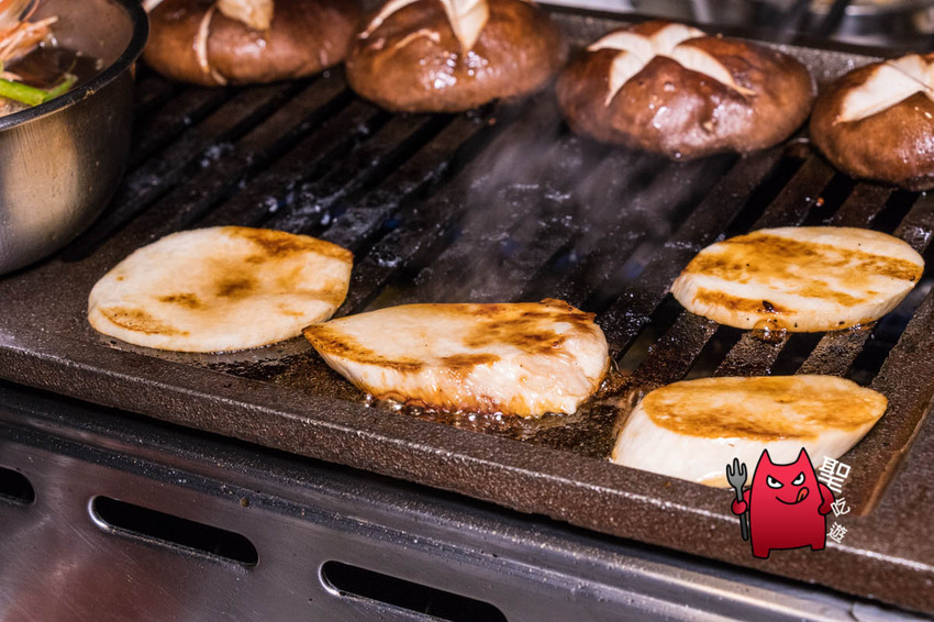 在服務人員幫忙我們烤的時候,也建議香菇、杏鮑菇再烤之前可以先泡上韓式醬油再上烤爐。