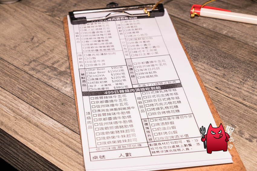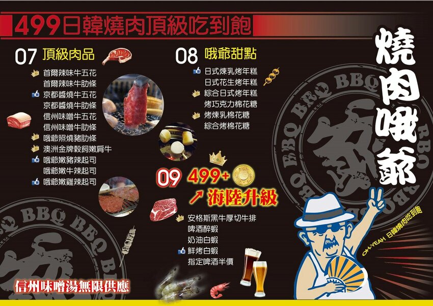 當天店家配的是499 + 50元的海陸吃到飽套餐,也就是燒肉哦爺最頂規的消費。