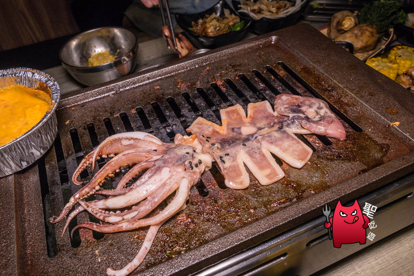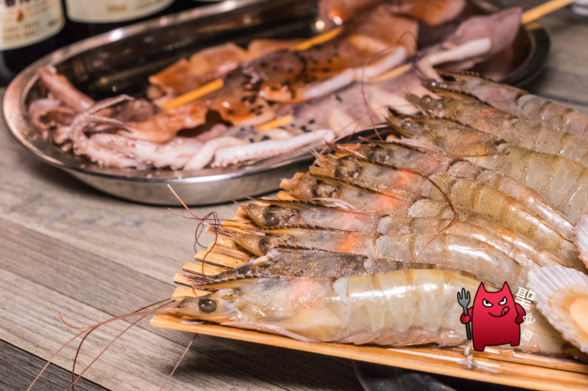 比較讓我驚豔的是海鮮,雖說基隆本身就有地利之便,但500上下的燒肉吃到飽,除了肉之外,還能吃到很不錯的白蝦、扇貝跟魷魚,倒是讓我意外!