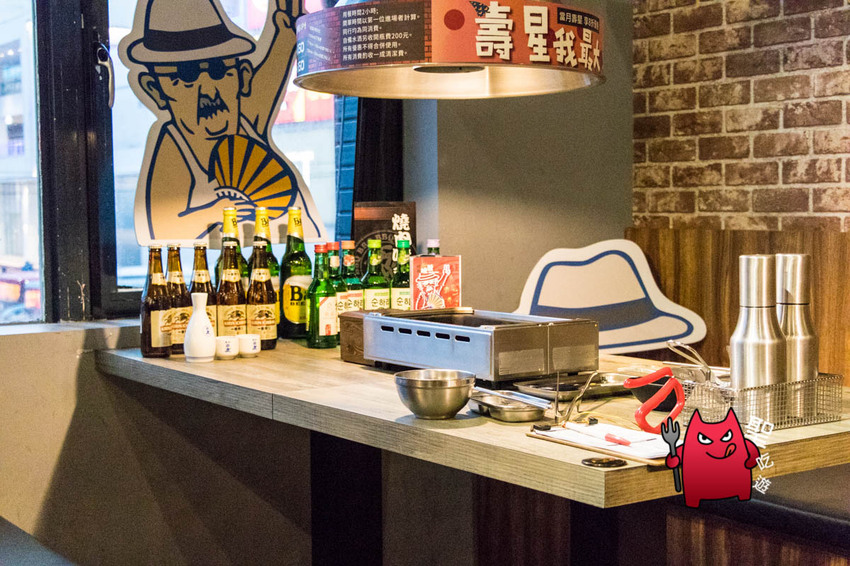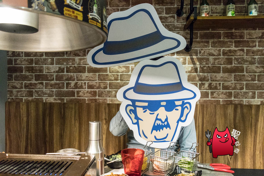 燒肉哦爺很有意思的是提供他們店裡吉祥物哦爺的立板,可以跟店家借來拍照打卡XDD