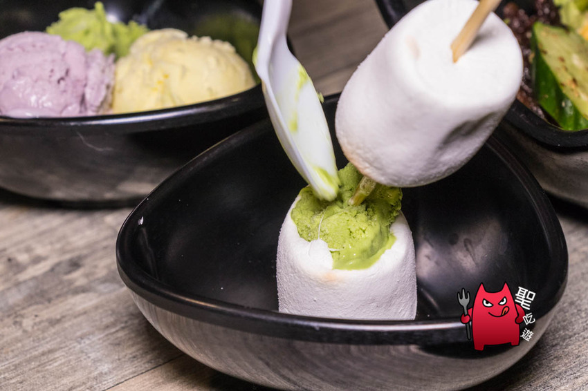 不過店家也很建議先把棉花糖烤軟之後,再從中間塞進一大坨的冰淇淋。