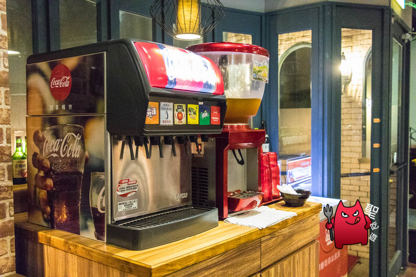 飲料的部分是無限暢飲,分別是可口可樂系列的飲料機跟無糖綠茶。