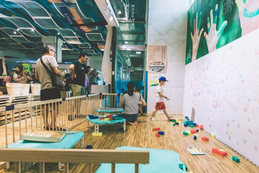 館內特別規劃親子兒童體驗區,給逛完展區或不想上樓的小朋友玩樂的褓姆區域。小朋友與家長可以自由在牆上創作手掌畫,可以讓小朋友體驗顏色的樂趣。